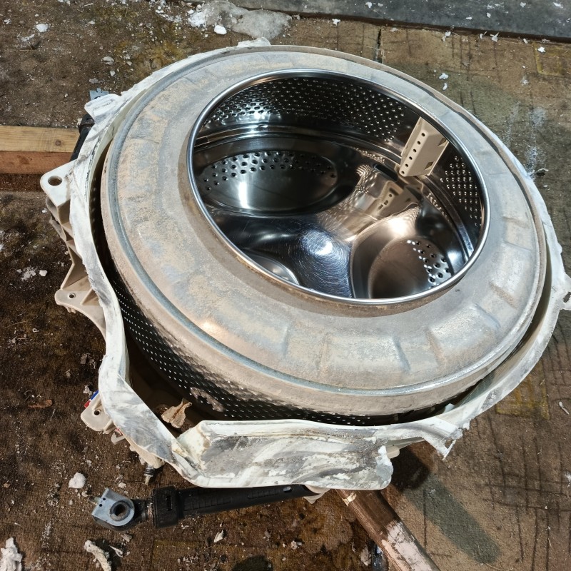 P.S. Обязательно во время сборки половинок тщательно сопоставляйте их, иначе небольшие отклонения и барабан будет задевать резинку которая идет на дверку, и будет очень неприятный скрип резины о барабан.