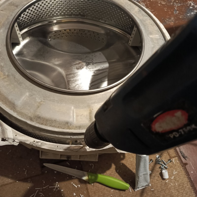 Приходится делать самоделки, в общем пилим пластиковый корпус барабана по шву где он склеен.